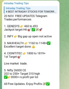 Friends in this post I will provide Best Intraday stocks for 21 Nov . Before Giving the stocks I want tell you about our Pre trading strategy to get profits almost 90 to 95% correctly. You can join our Telegram Channel subscribe our YouTube channel and follow our Instagram page to get more details about the strategy. Because this is one of the best strategy.